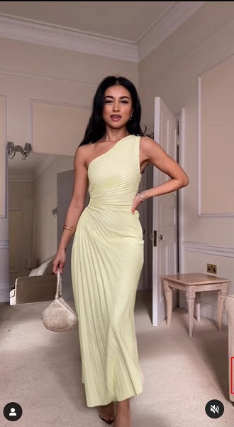 Women Clothing One Shoulder Pleated Color Light Color Series Irregular Asymmetric Dress