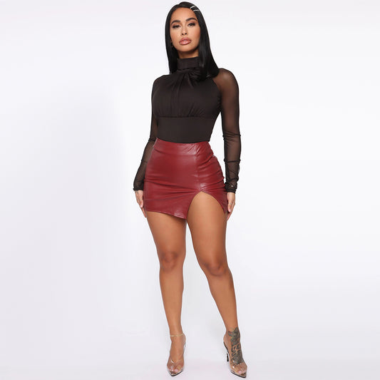 Women Skirt High Waist Hip-Wrapped Skirt Nightclub Faux Leather Zipper Sexy Black Leather Skirt