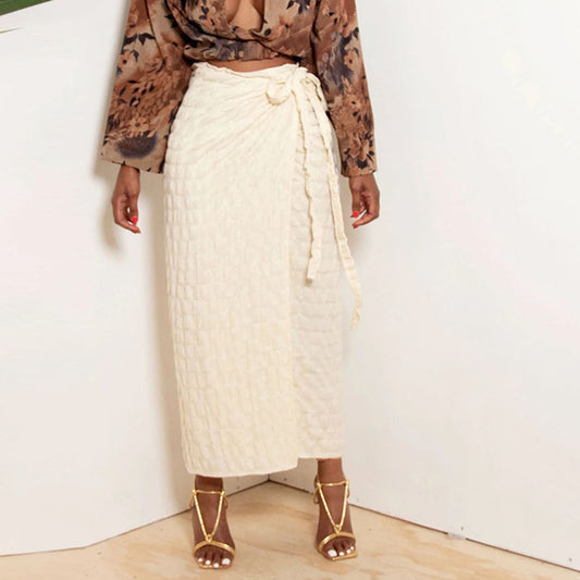 Vacation Irregular Asymmetric Ruffled Slit Skirt Waist Trimming Lace Up Mid Length Niche Sexy Skirt