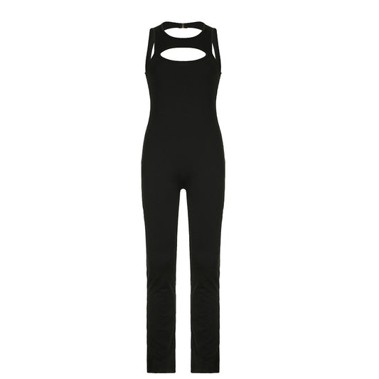 Casual Sports Women Clothing Office Hollow Out Cutout out Tight Solid Color Jumpsuit Backless Low Waist Long Jumpsuit