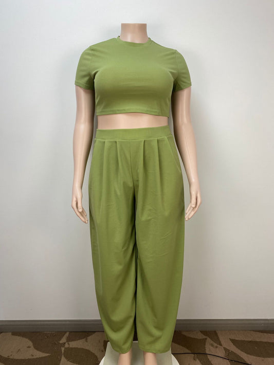 Plus Size Popular Comfortable Casual Solid Color Summer Essential Two Piece Set