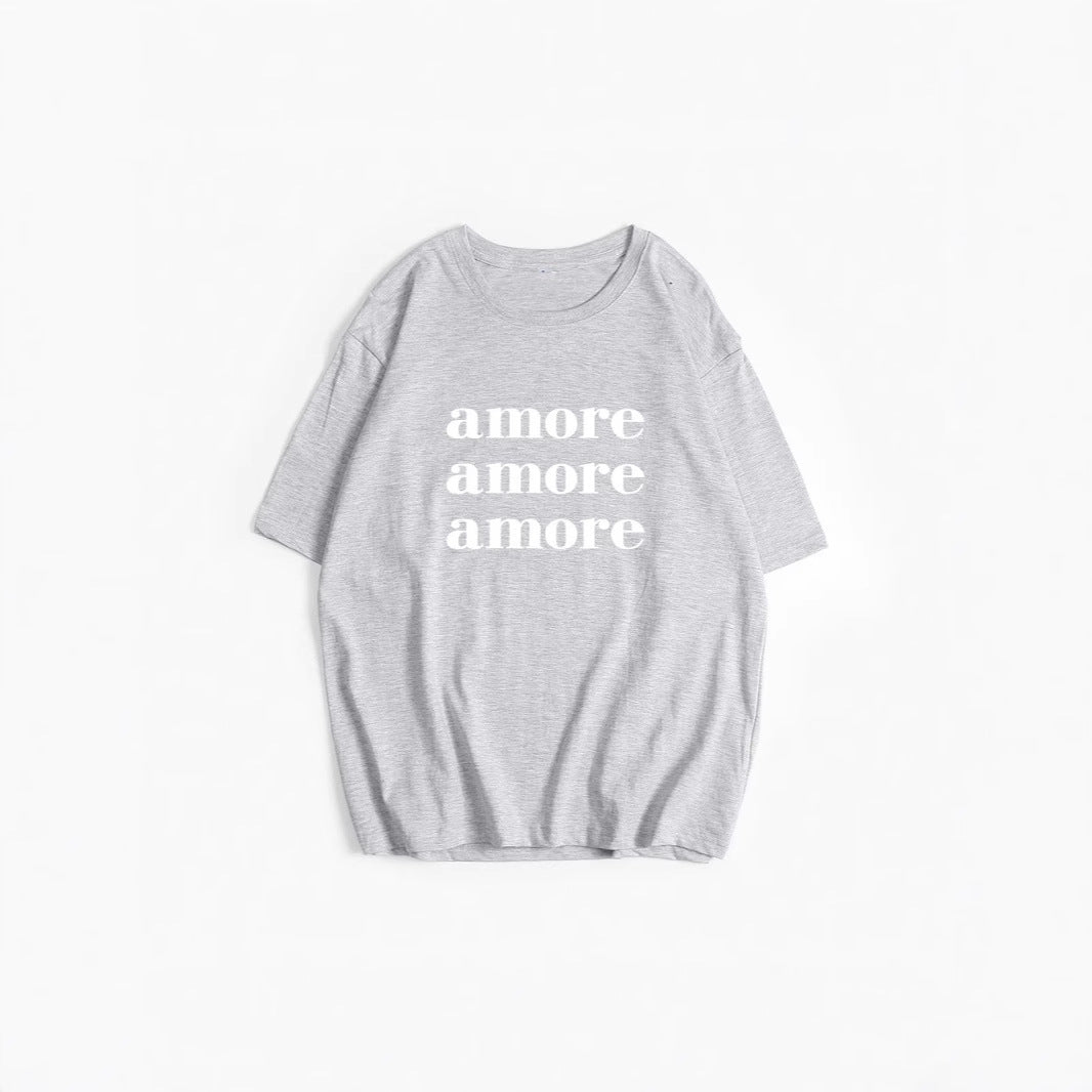 Printed T shirt Women Summer Loose round Neck Cotton Short Sleeve Top