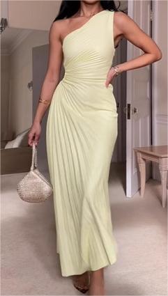 Women Clothing One Shoulder Pleated Color Light Color Series Irregular Asymmetric Dress